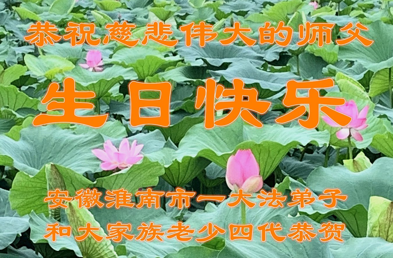 在普天同庆、同祝、同颂世界法轮大法日到来之际,弟子携明白真相的家人叩拜恩师,恭祝慈悲伟大的师父生日快乐! 感恩神圣伟大的师父慈悲救度,弟子无法用语言表达,唯有谨遵师父的教诲,学好法,修好自己,多救人,做好三件事,兑现誓约,完成使命,圆满跟师父回家! 安徽省淮南市一大法弟子和大家族老少四代人叩拜 北京市海淀区高校及三区的大法弟子恭祝慈悲伟大的师尊生日快乐!