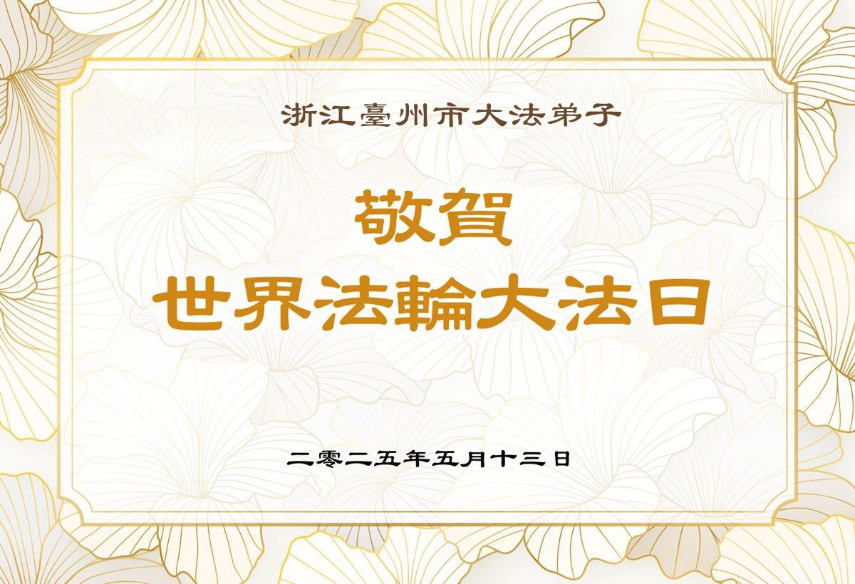 在2025年普天同庆世界法轮大法日之际,弟子们遥祝师尊生日快乐! 弟子感恩师尊对弟子与家人的保护,感恩师尊慈悲苦度。在今后的修炼路上,弟子一定精進实修,向内找提高心性,做好三件事,让师尊少一点操劳,多一份欣慰! 浙江台州市大法弟子恭贺世界法轮大法日!恭祝慈悲伟大的师尊生日快乐!