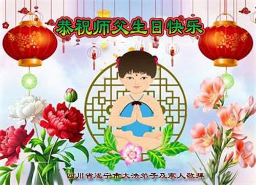 【明慧网二零二五年五月十三日】 四川省遂宁市大法弟子及家人恭祝慈悲伟大的师尊生日快乐!