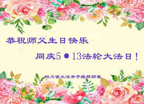 慈悲伟大师父的生日和五∙一三世界法轮大法日同时到来之际,在这双喜临门的日子,弟子全家恭祝师父生日快乐! 2025年4月6日 四川省大法弟子恭祝师父生日快乐!同庆5·13世界法轮大法日!