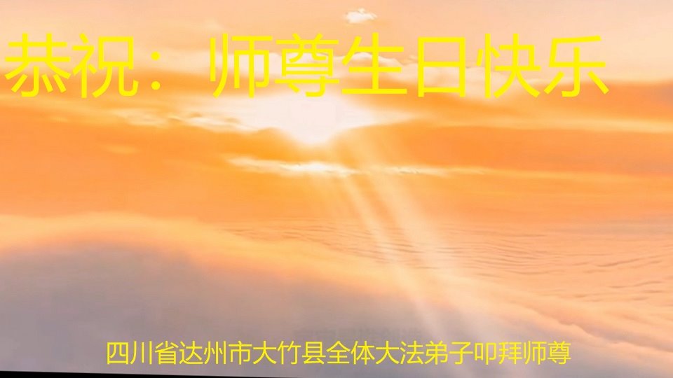感恩师尊救弟子出苦海,引领弟子找到了回家的路。感恩无尽言,只有精進实修,做好三件事报师恩! 达州市达川区一大法弟子跪拜 四川省德阳市一大法弟子恭贺世界法轮大法日!恭祝师父生日快乐!