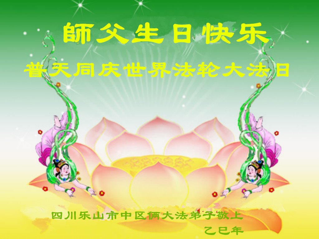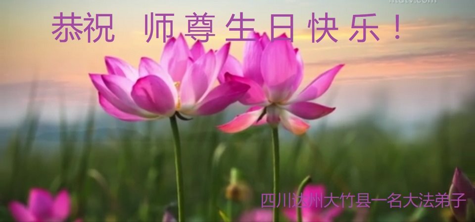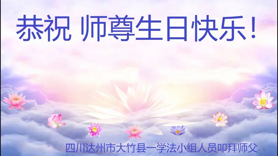 师父辛苦了! 四川乐山市中区俩大法弟子敬上 四川巴中市大法弟子庆贺世界法轮大法日!恭祝师父生日快乐!