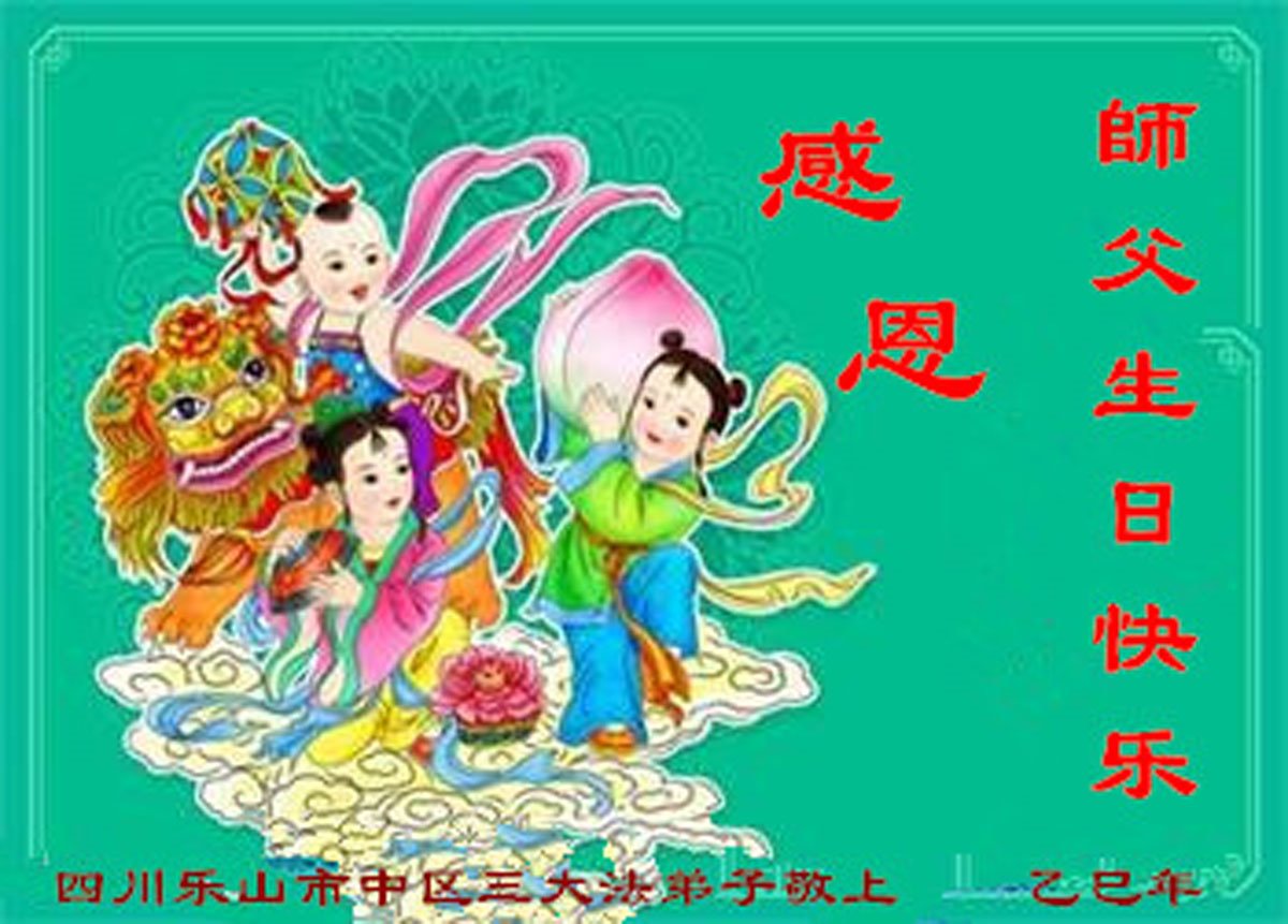 师父,您辛苦了! 感恩师父! 四川乐山市中区城南一学法小组大法弟子敬上 四川乐山市中区三位大法弟子恭祝师父生日快乐!