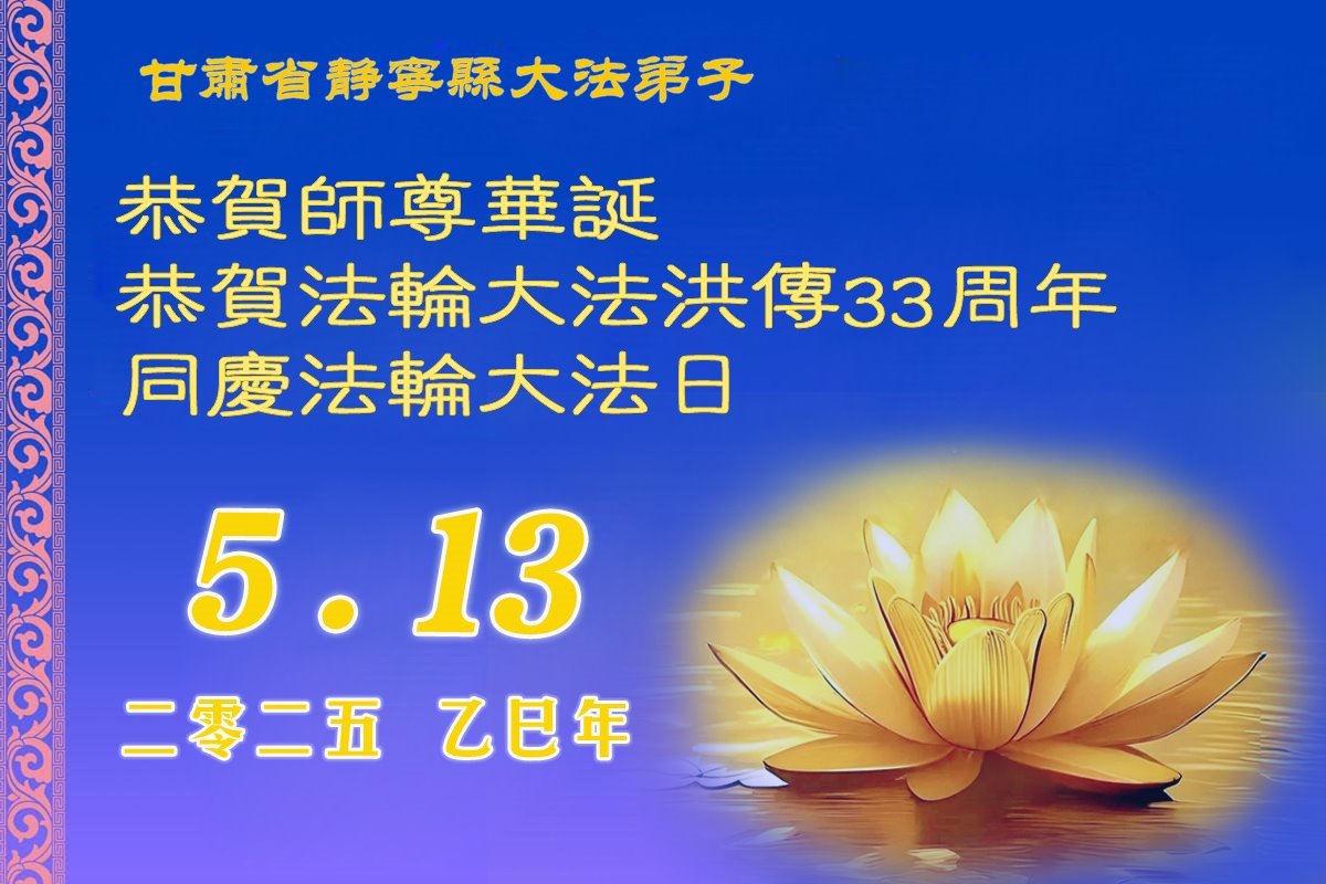 甘肃省平凉市静宁县大法弟子恭贺世界法轮大法日!
