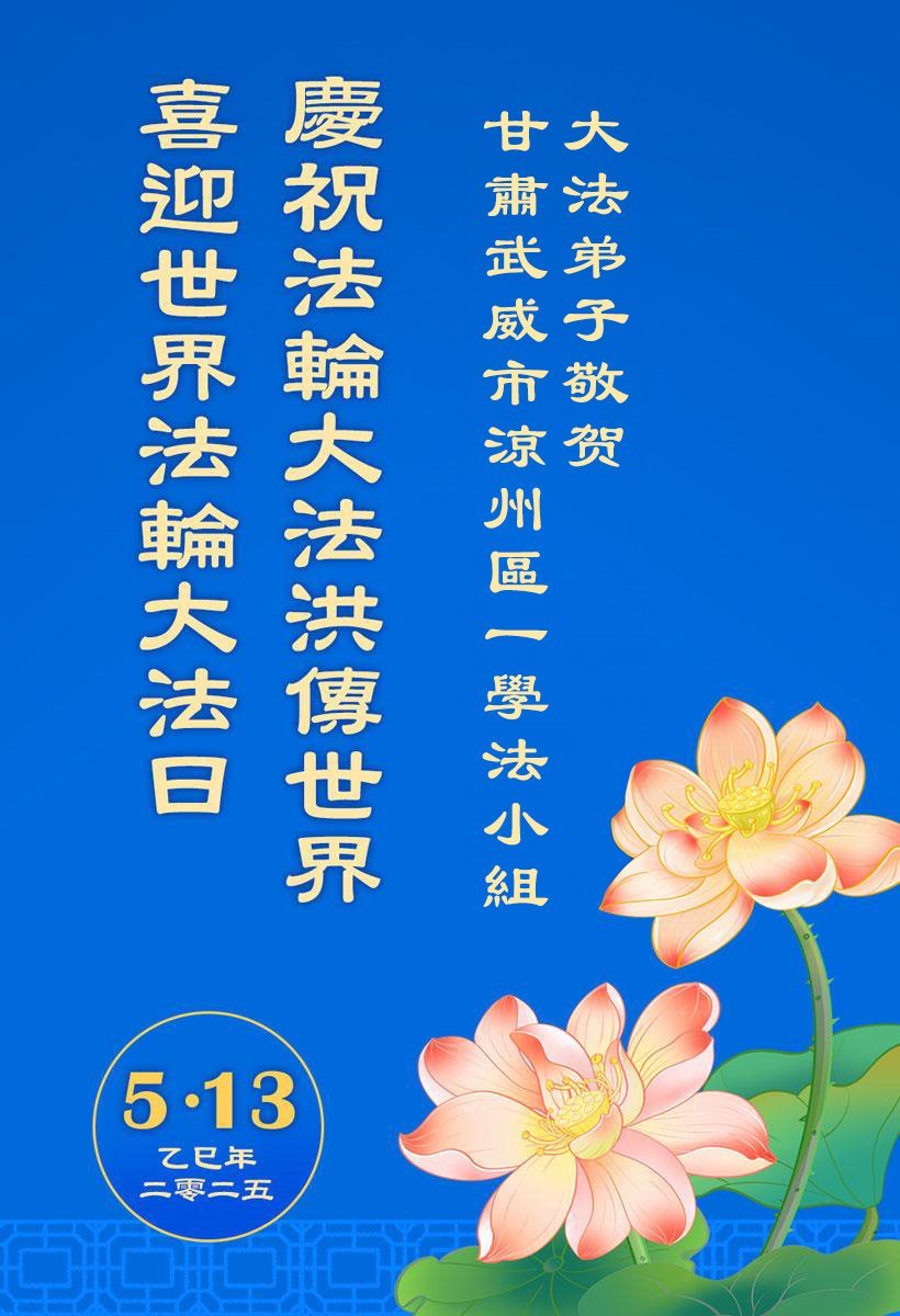 甘肃省兰州市城关区一学法小组大法弟子庆贺5.13世界法轮大法日!恭祝师尊生日快乐!