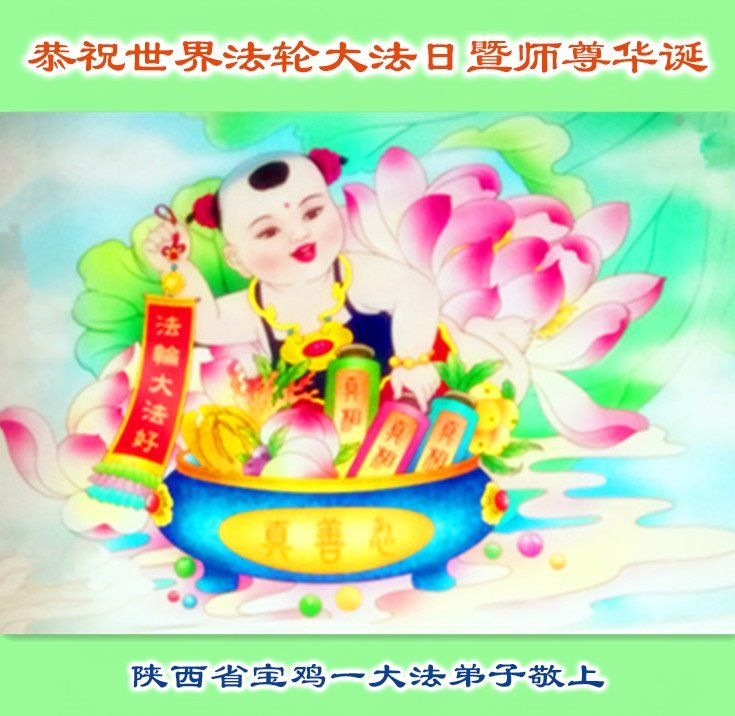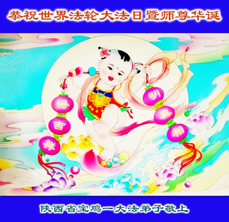 陕西省宝鸡大法弟子恭祝师尊生日快乐!恭贺世界法轮大法日!