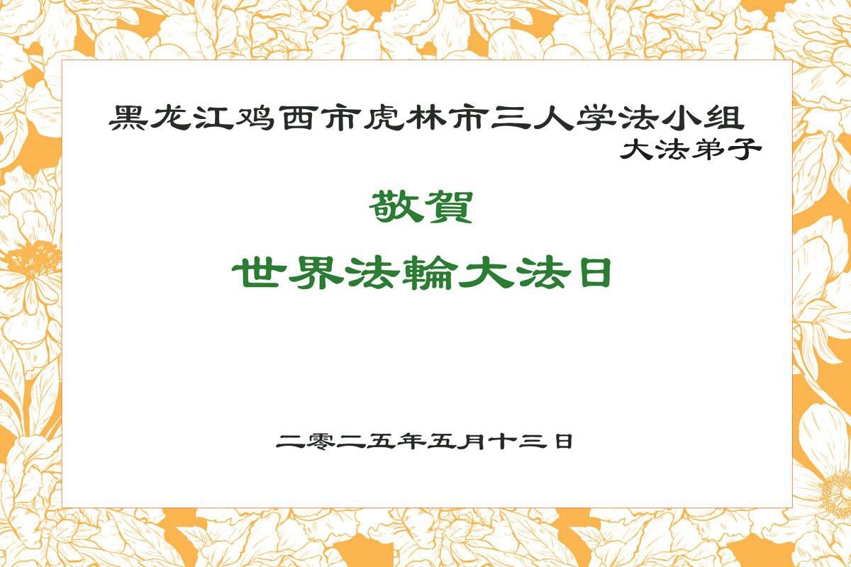 黑龙江省鸡西市虎林市一大法弟子恭贺世界法轮大法日!