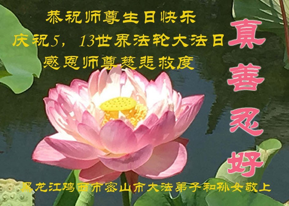 恭祝师父生日快乐!恭贺世界法轮大法日! 黑龙江省鸡西市鸡冠区六人学法小组大法弟子敬上 黑龙江省鸡西市密山市大法弟子庆贺世界法轮大法日!恭祝师尊生日快乐!