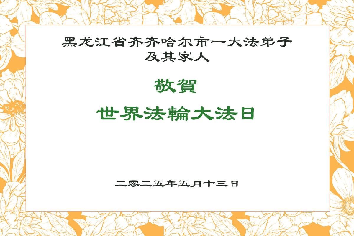 黑龙江省齐齐哈尔市一大法弟子恭贺世界法轮大法日暨敬祝师尊生日快乐!