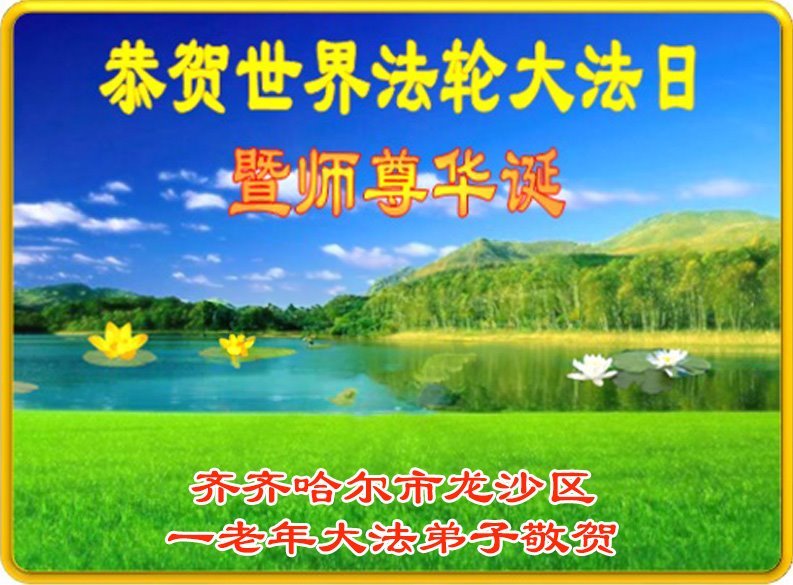恭祝师尊生日快乐!恭贺世界法轮大法日! 齐齐哈尔市龙沙区一老年大法弟子敬上 黑龙江省齐齐哈尔大法弟子恭贺世界法轮大法日!恭祝师尊生日快乐!