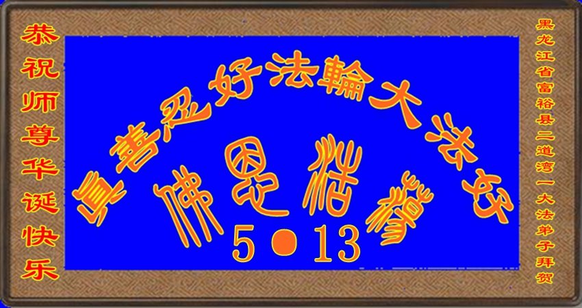 恭祝师尊华诞快乐!恭祝5·13世界法轮大法日!弟子信师信法,做好三件事。 愿师尊多一分欣慰,少一点操劳。 黑龙江齐齐哈尔市富裕县一大法弟子恭贺世界法轮大法日!恭祝师父生日快乐!