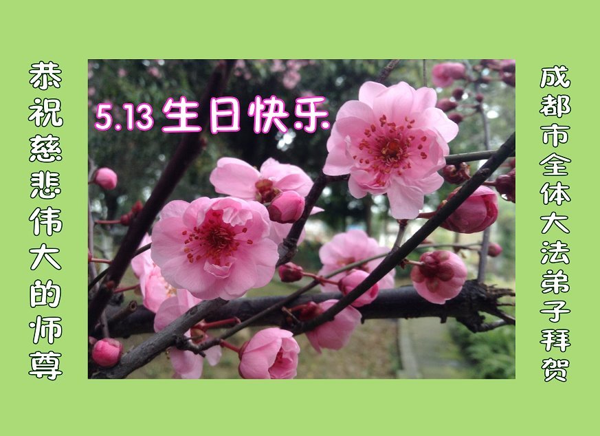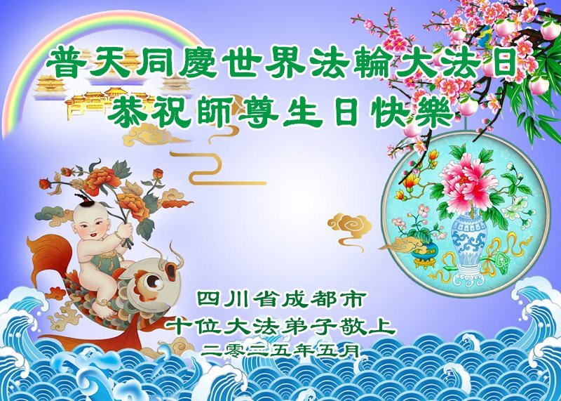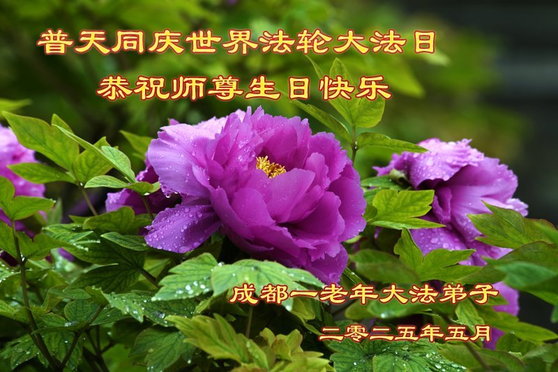 【明慧网二零二五年五月十三日】 四川省成都市龙泉驿区一大法弟子恭祝师尊生日快乐!恭贺世界法轮大法日!