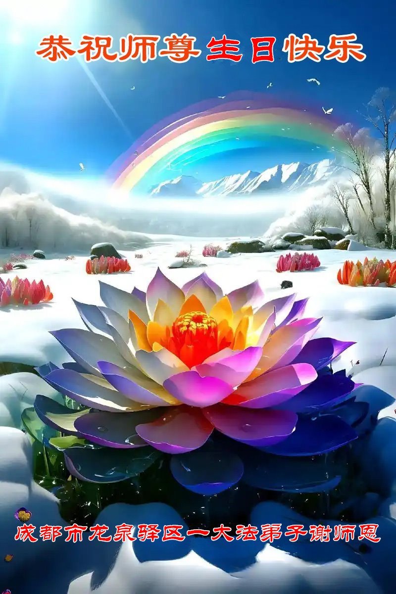 恭祝师尊生日快乐!恭贺世界法轮大法日! 四川省成都市龙泉驿区一大法弟子敬上 四川省成都市龙泉驿区一大法弟子恭祝师父生日快乐!恭贺世界法轮大法日!
