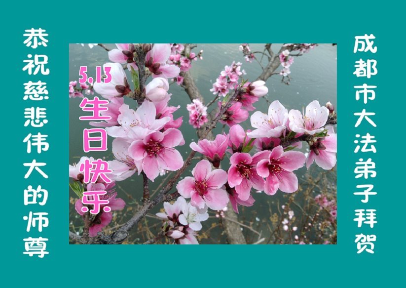 恭祝师尊5.13生日快乐!恭贺世界法轮大法日!谢谢师尊的慈悲普度! 四川省成都市大法弟子敬上 四川省成都市大法弟子恭祝师尊5.13生日快乐!恭贺世界法轮大法日!