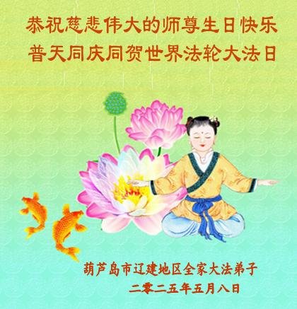 辽宁葫芦岛大法弟子及全家人恭祝师尊华诞!恭贺世界法轮大法日!