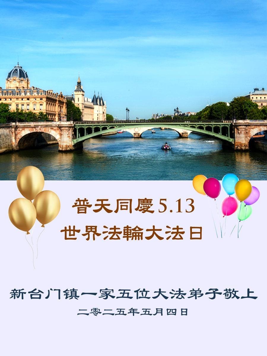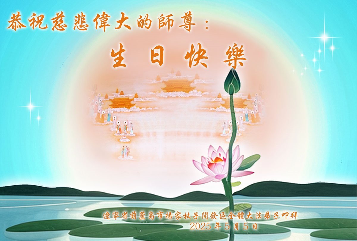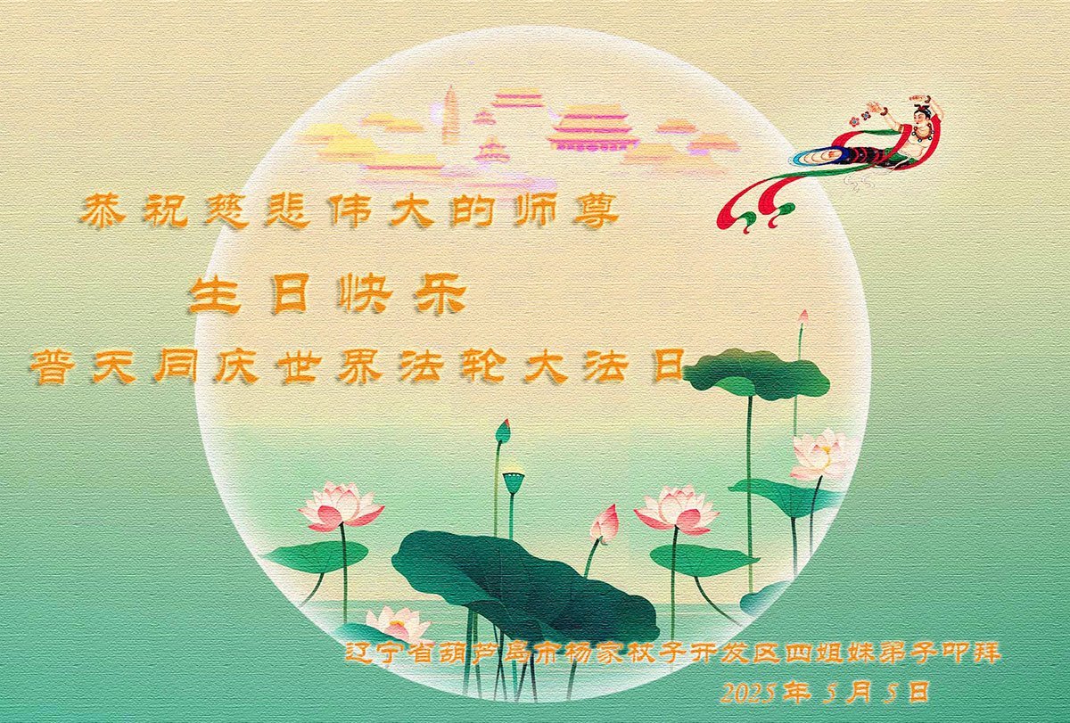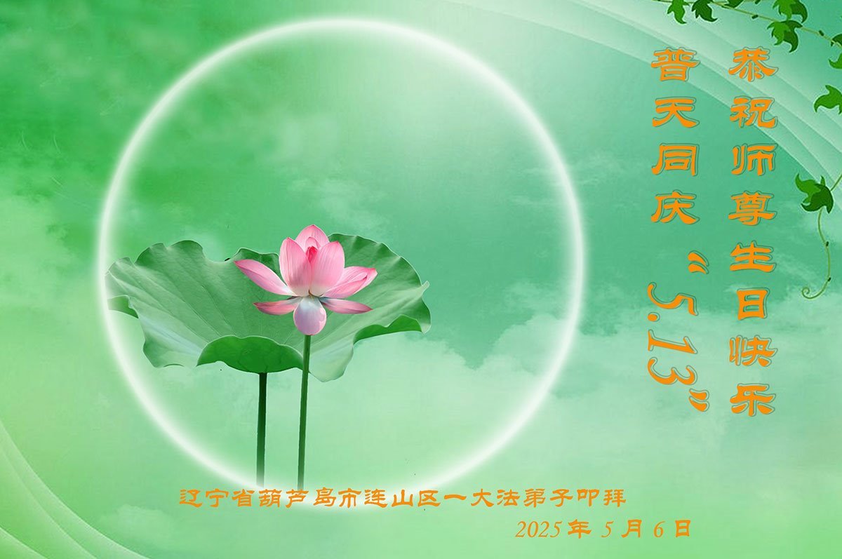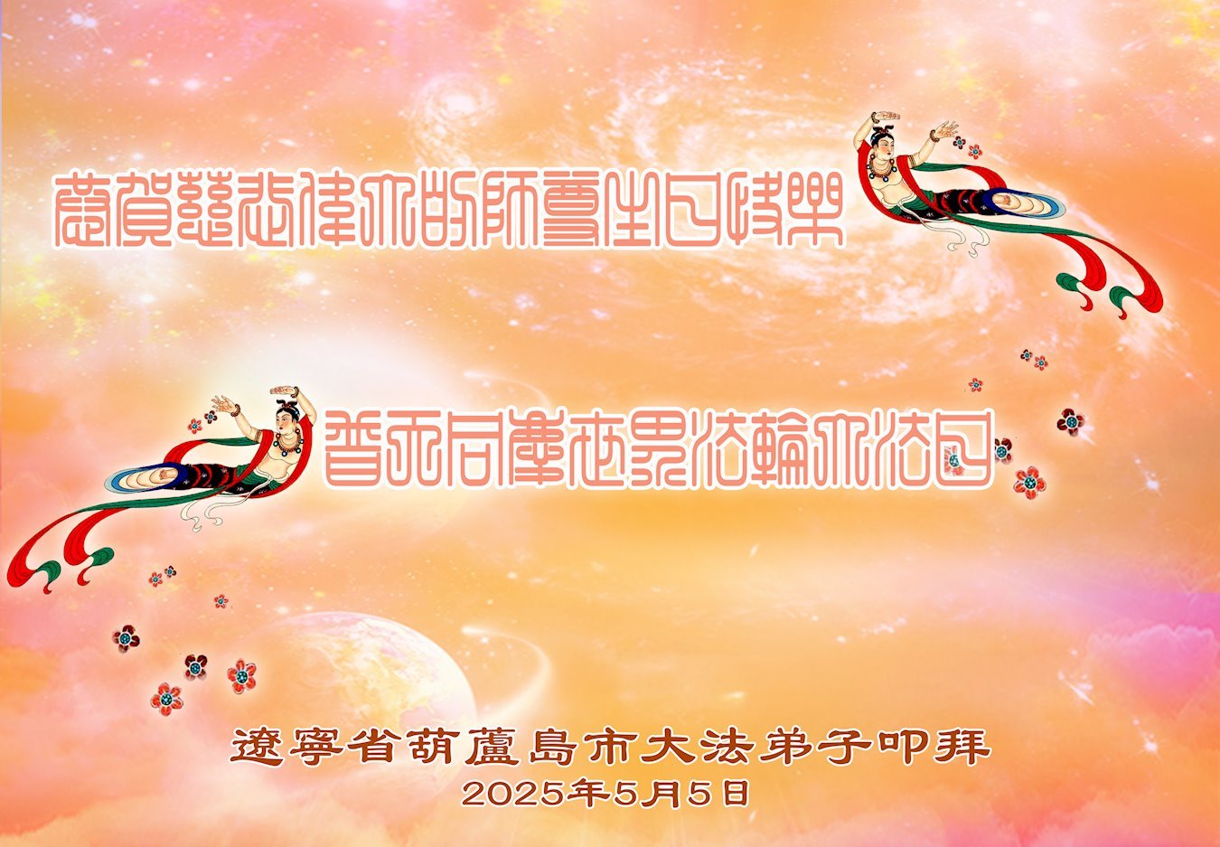 【明慧网二零二五年五月十三日】 辽宁省葫芦岛市大法弟子恭贺世界法轮大法日!恭祝慈悲伟大的师尊生日快乐!