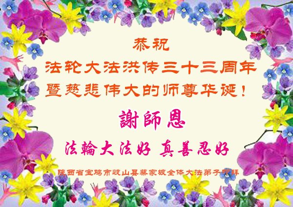 陕西省宝鸡市岐山县蔡家坡大法弟子恭贺世界法轮大法日!