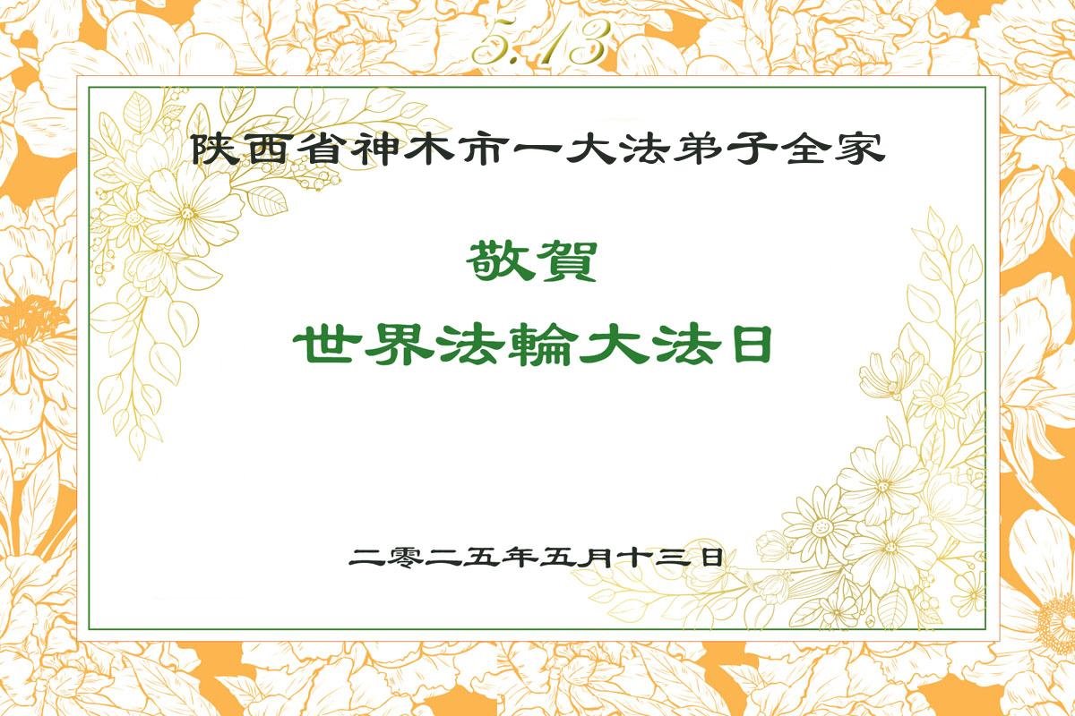 【明慧网二零二五年五月十三日】 陕西省铜川市王益区大法弟子恭贺世界法轮大法日!恭贺法轮大法洪传三十三周年!恭祝师尊华诞!