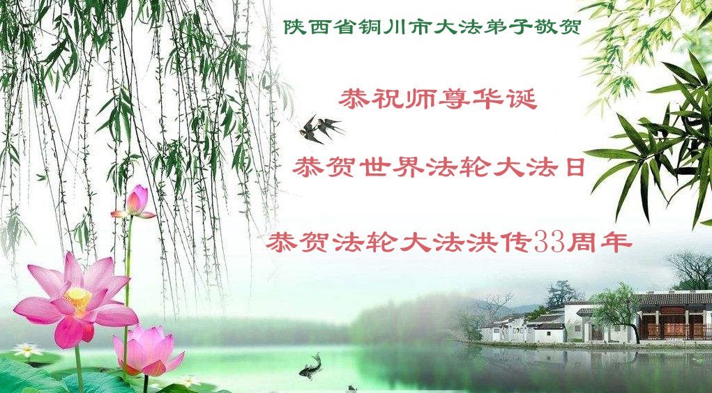 陕西省铜川市大法弟子恭祝师尊华诞!恭贺世界法轮大法日!恭贺法轮大法洪传世界三十三周年!