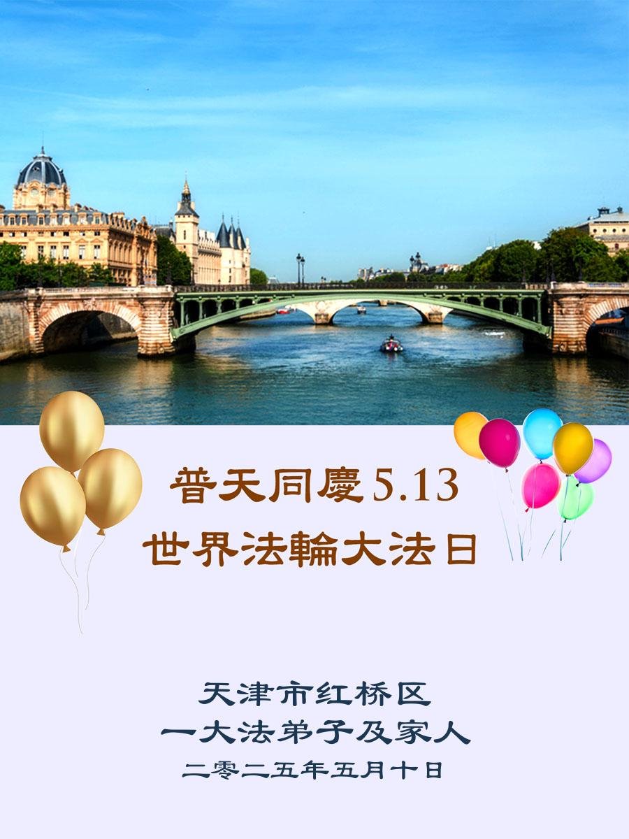 天津市河东区一大法弟子全家 二零二五年五月六日 天津市河东区一大法弟子及家人恭贺5∙13世界法轮大法日!