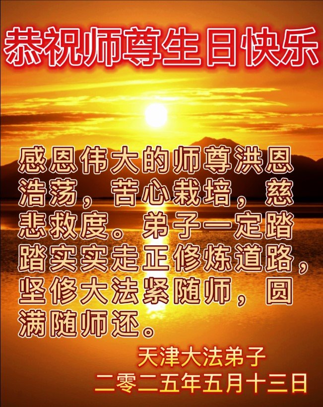 【明慧网二零二五年五月十三日】 天津大法弟子恭祝师尊生日快乐!