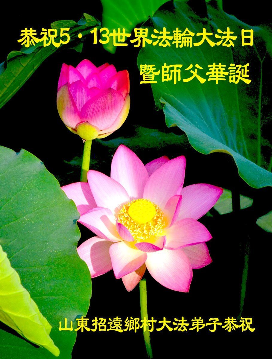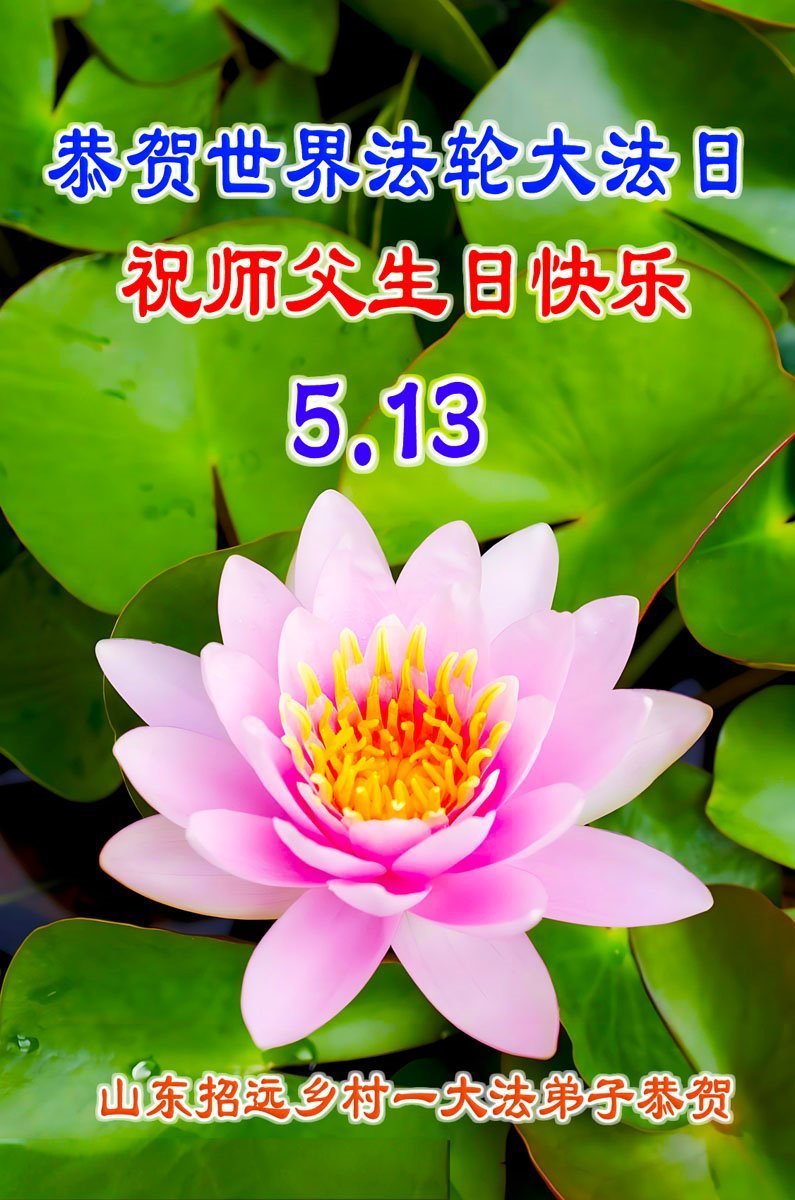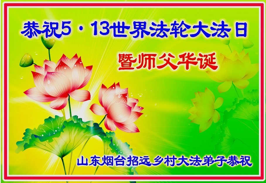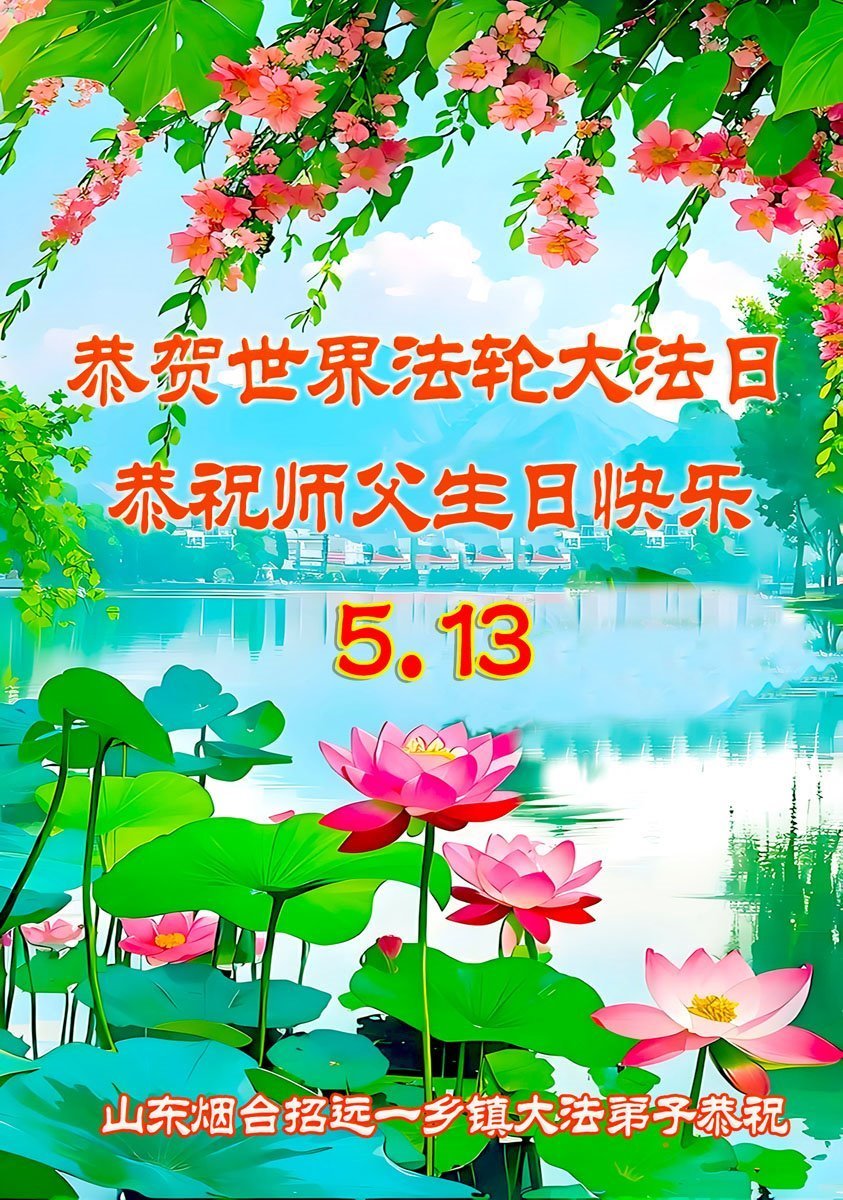 【明慧网二零二五年五月十四日】 山东烟台招远一乡镇大法弟子恭祝世界法轮大法日暨师父生日快乐!