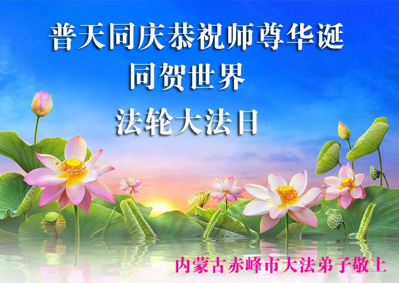 值此佳节,弟子叩拜,谢谢您的慈悲普度!师父您辛苦啦!我们全家都在大法中受益,感恩师父的保护! 内蒙古赤峰市大法弟子同庆同贺师尊华诞暨世界法轮大法日!