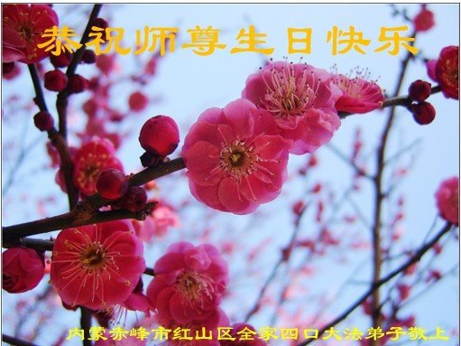 内蒙古自治区赤峰市红山区一家四口大法弟子恭祝师尊生日快乐!