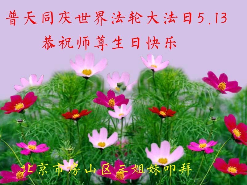 北京市房山区三位大法弟子恭贺世界法轮大法日!
