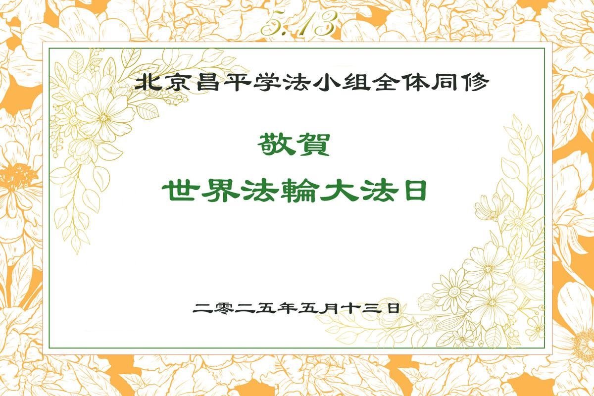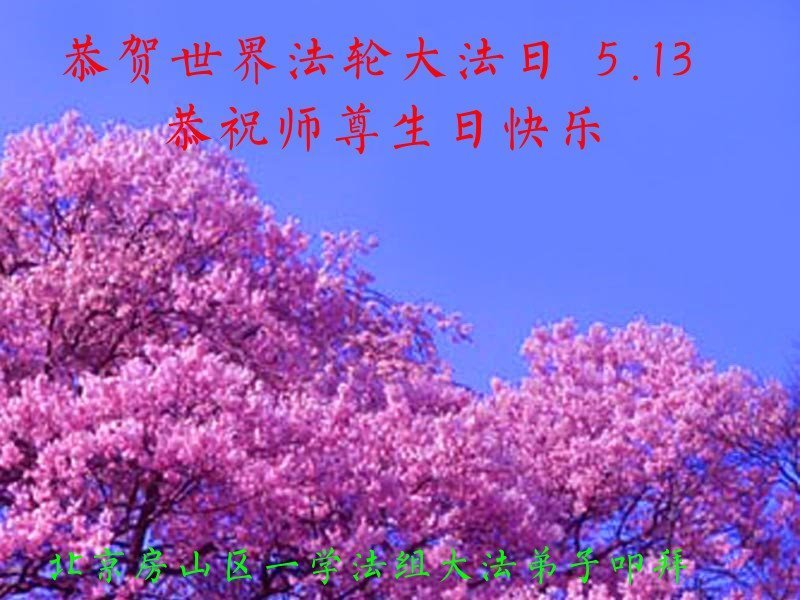 北京房山区一学法组大法弟子恭贺世界法轮大法日!恭祝师尊生日快乐!