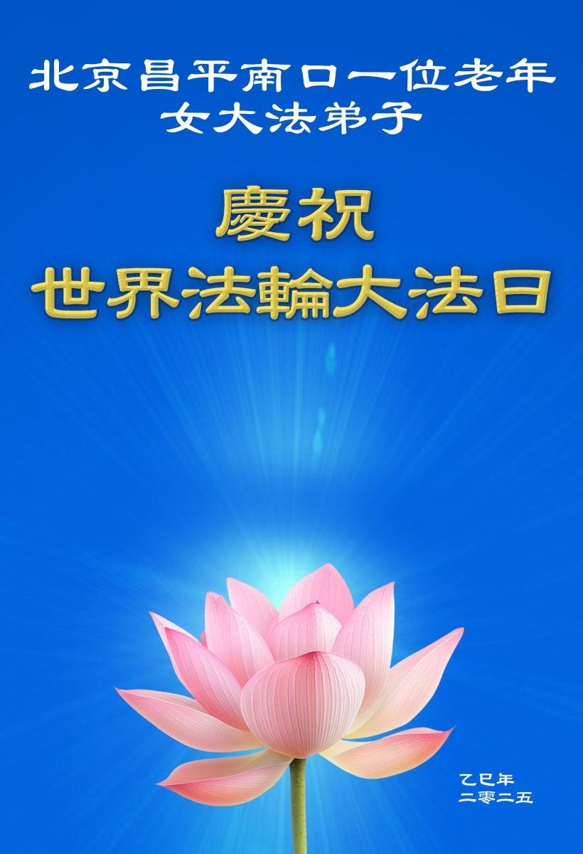 北京昌平南口一位老年女大法弟子庆祝世界法轮大法日!