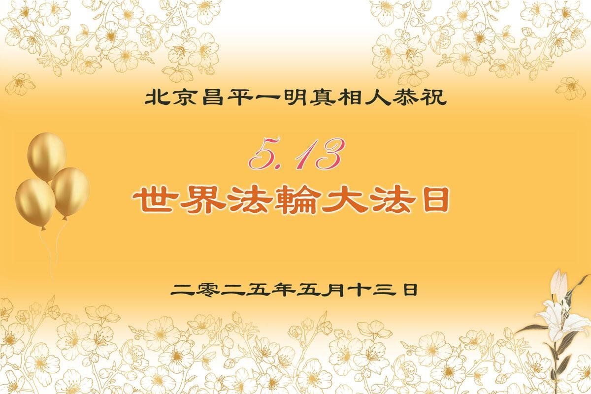 北京昌平一明真相人恭贺世界法轮大法日!祝师父生日快乐!