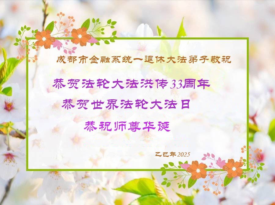 四川省成都市金融系统一退休大法弟子恭贺世界法轮大法日暨师尊华诞!