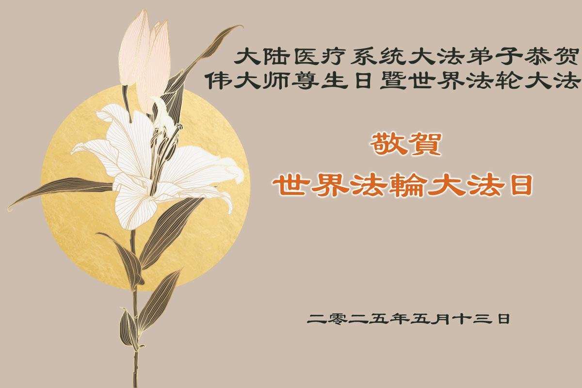 感恩师尊慈悲苦度! 云南省嵩明县水务系统大法弟叩拜 二零二五年五月十日 中国大陆医疗系统大法弟子恭贺世界法轮大法日暨师尊华诞!