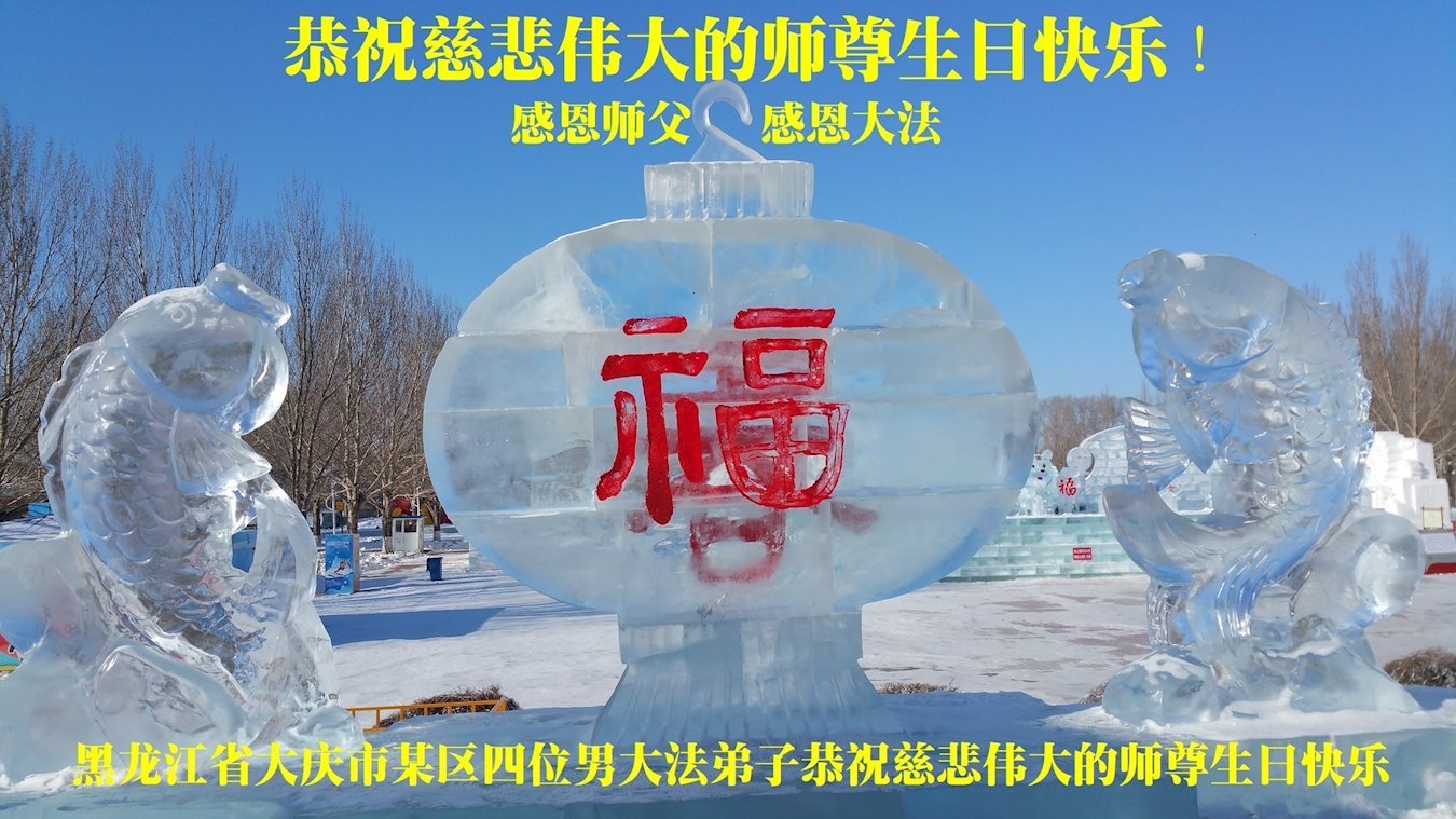 法轮大法好!真善忍好! 黑龙江省大庆市某区四位男大法弟子恭祝慈悲伟大的师尊生日快乐!