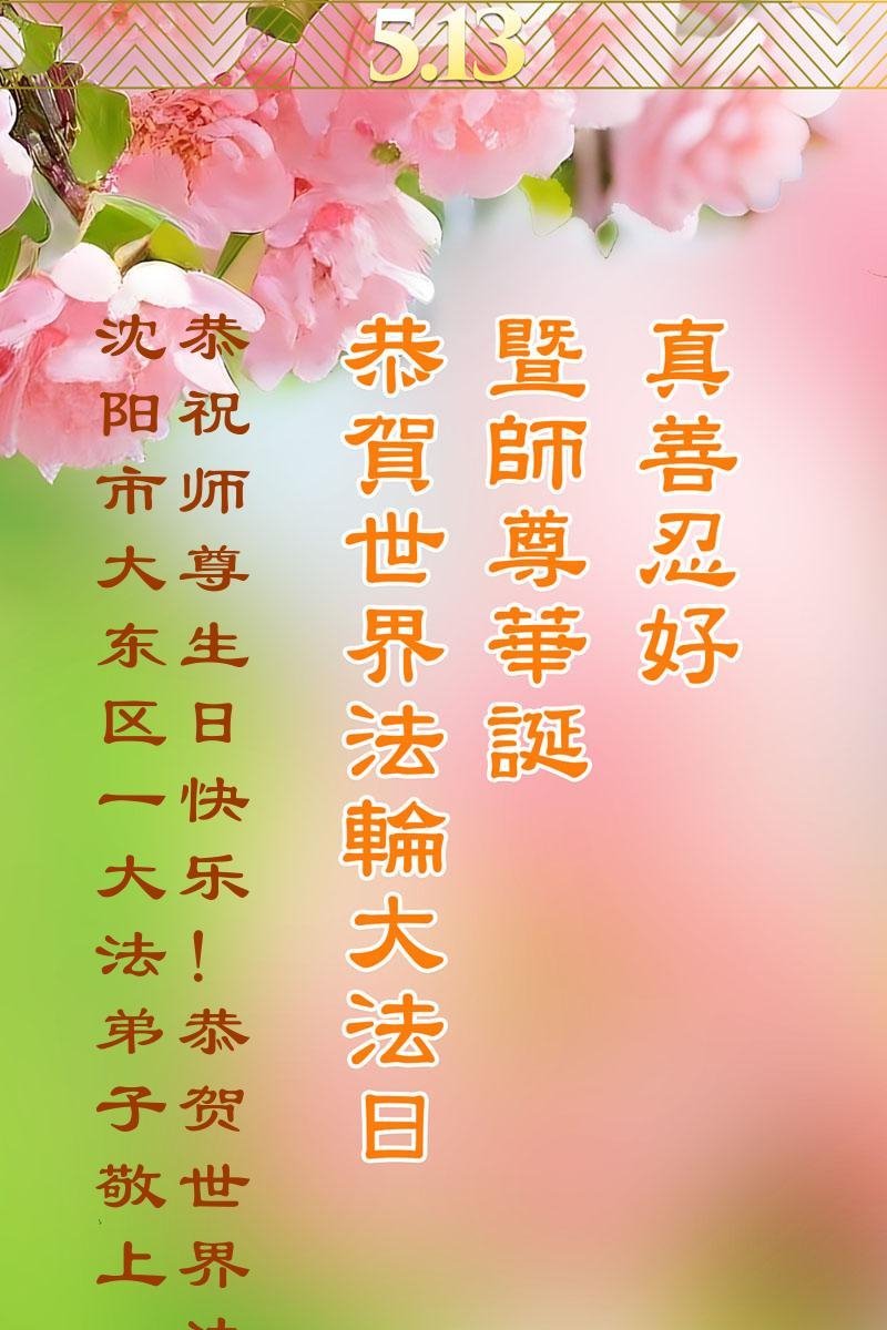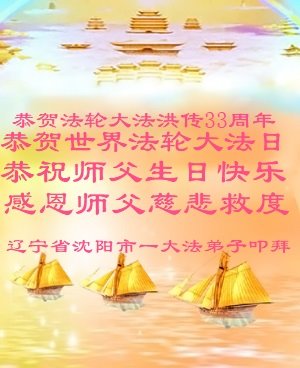 辽宁沈阳市大东区一大法弟子恭祝师尊生日快乐!恭贺世界法轮大法日!
