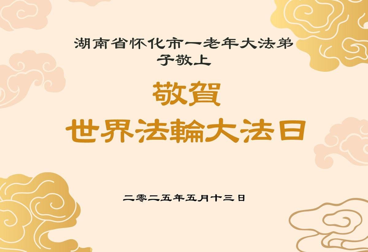 湖南省怀化市一老年大法弟子恭贺世界法轮大法日暨师尊华诞!