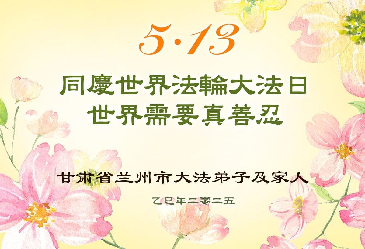 甘肃省兰州市七里河区大法弟子 二零二五年五月十日 甘肃省兰州市安宁区大法弟子恭祝伟大师尊生日快乐!恭贺世界法轮大法日!