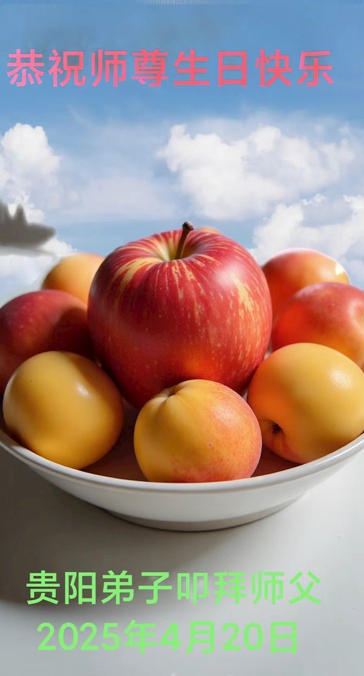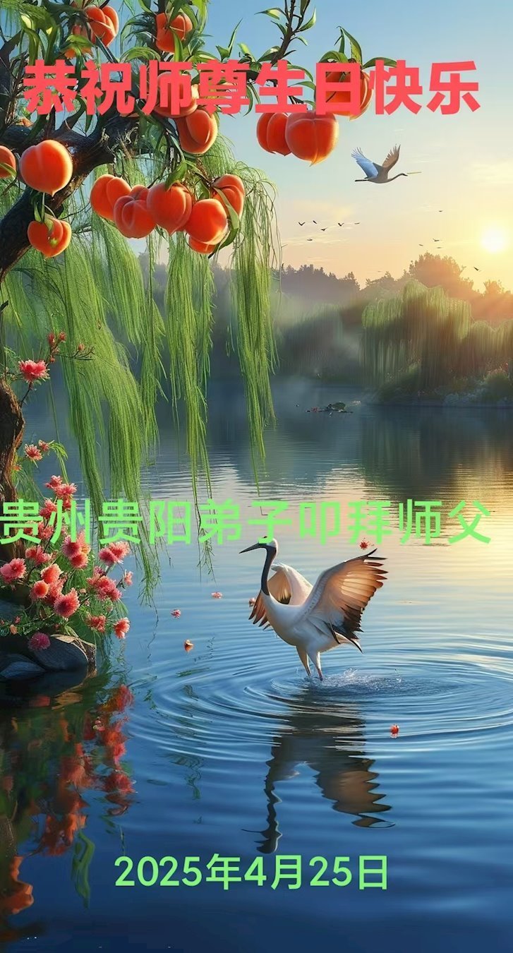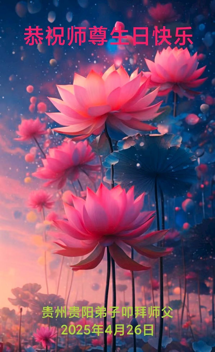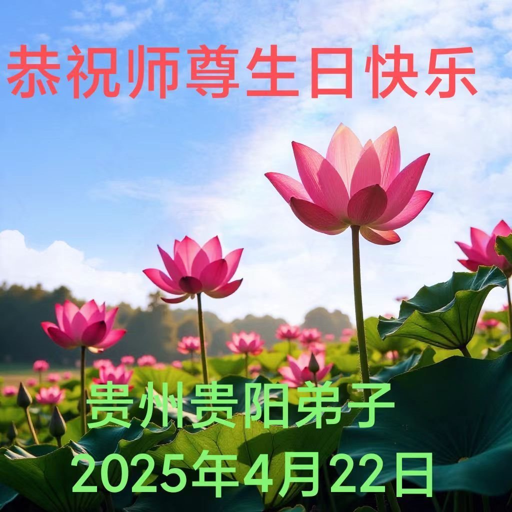 祝师父生日快乐!师父您辛苦了! 贵州省贵阳市一大法弟子! 二零二五年五月十日 贵州省遵义市一学法小组恭贺世界法轮大法日!恭祝师尊生日快乐!