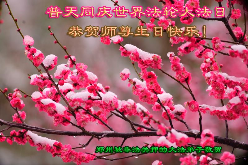 郑州市被非法关押的大法弟子恭祝师父生日快乐! 普天同庆世界法轮大法日! 冰雪已经开始融化,曙光就在眼前。无论在任何艰苦的环境下,我们都坚信师尊坚信大法! 四川省南充市被非法关押的大法弟子恭贺世界法轮大法日暨师尊华诞!