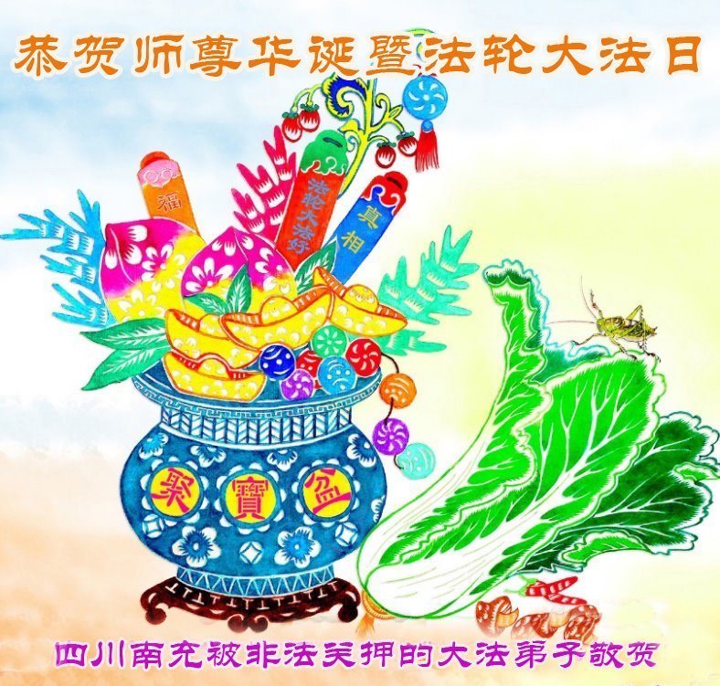 恭祝慈悲伟大的师尊华诞快乐!普天同庆世界法轮大法日!恭贺法轮大法洪传33周年! 虽身陷囹圄,心志仍坚如磐石,正念正行,信师信法。 重庆市潼南区被非法关押的大法弟子恭祝伟大的师尊生日快乐!