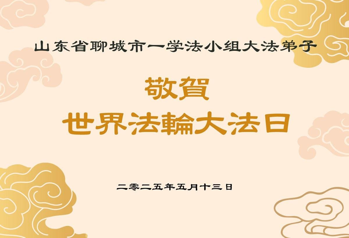 山东省聊城市一学法小组大法弟子恭贺世界法轮大法日暨慈悲伟大师尊生日快乐!