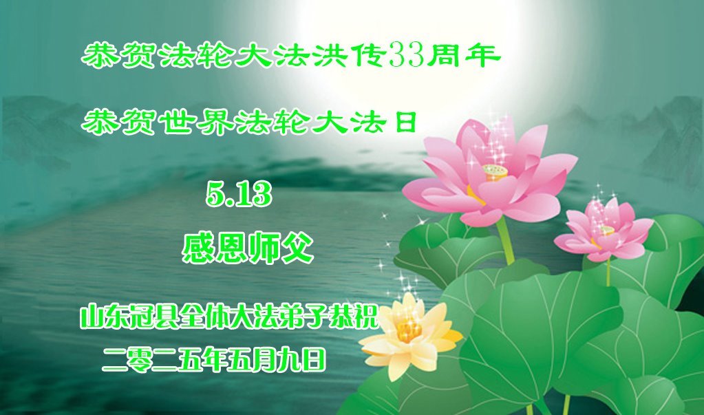 山东省聊城市全体大法弟子恭贺世界法轮大法日暨慈悲伟大师尊生日快乐!
