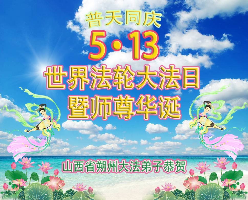 普天同庆5.13暨师父华诞 祝师父生日快乐!全世界大法弟子法轮大法日快乐! 多谢师父慈悲救度 肩负重任修炼如初 兑现来世誓言约定 唤醒众生同化大法 救度在急正念正行 是弟子的责任使命 坚定信念放下执著 解体邪恶走向圆满 山西省大同市广灵县大法弟子敬上 山西临汾市襄汾县大法弟子贺法轮大法日!
