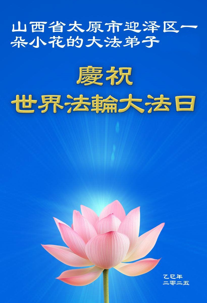 山西省临汾市曲沃县一大法弟子全家人恭祝师尊生日快乐! 山西省曲沃县大法弟子敬上 山西省晋中市祁县大法弟子恭祝师父生日快乐暨世界法轮大法日!