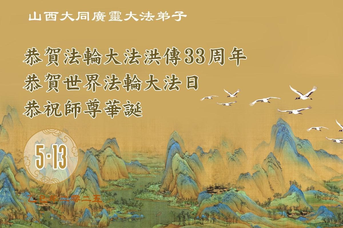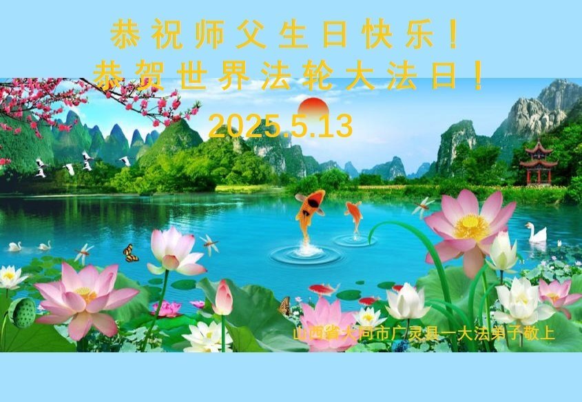 山西大同广灵县大法弟子敬上 二零二五年五月十日 山西省朔州市大法弟子恭贺世界法轮大法日暨师尊华诞!
