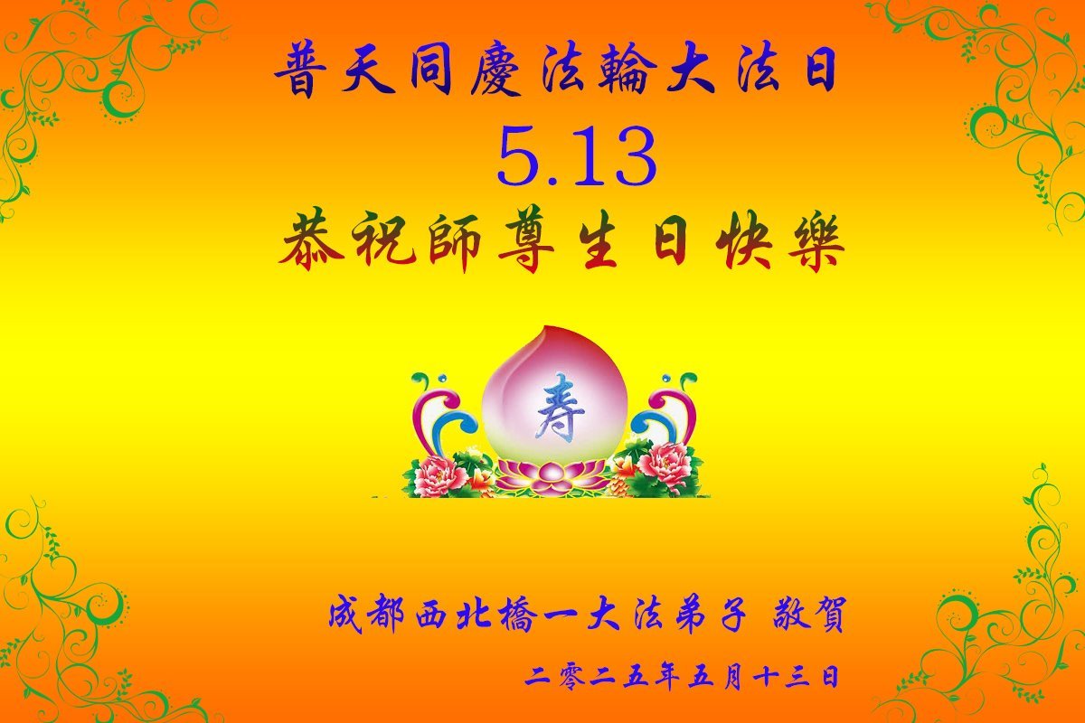 恭贺世界法轮大法日! 四川省成都市西北桥一大法弟子恭祝师尊生日快乐!