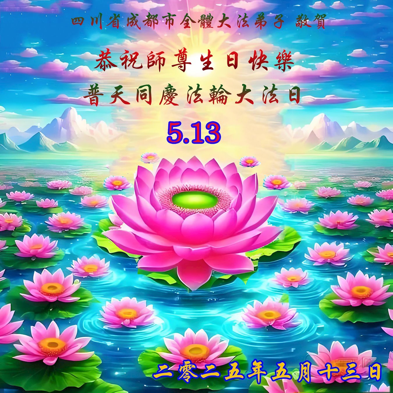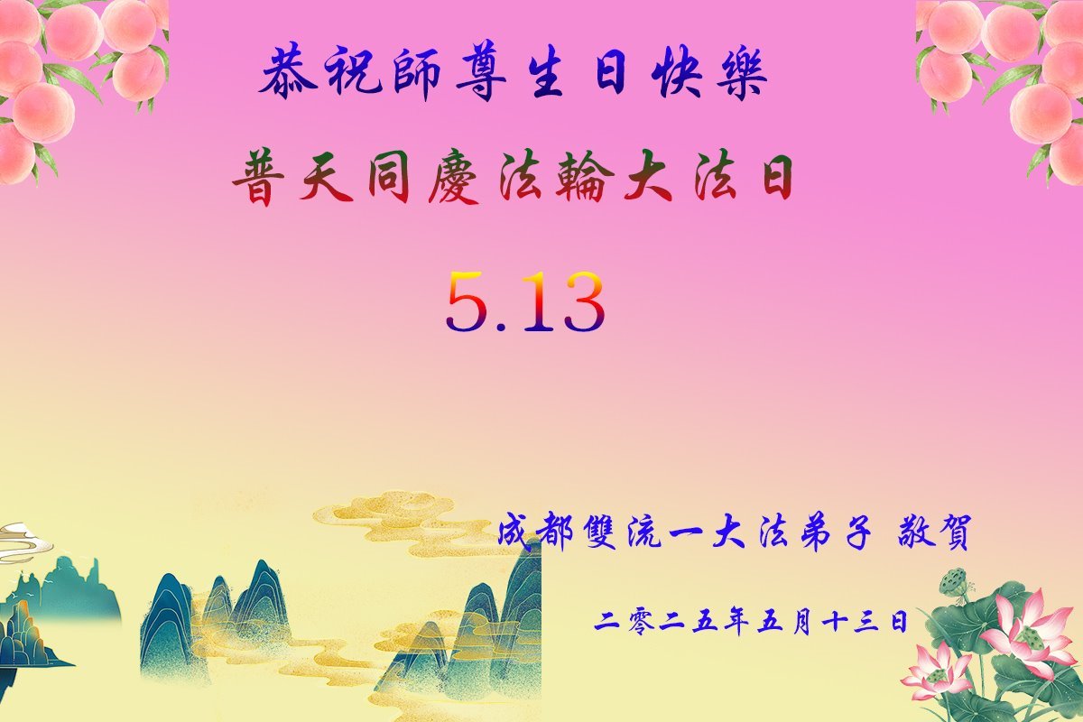 【明慧网二零二五年五月十四日】 四川省成都市东门一大法弟子恭祝师尊生日快乐!