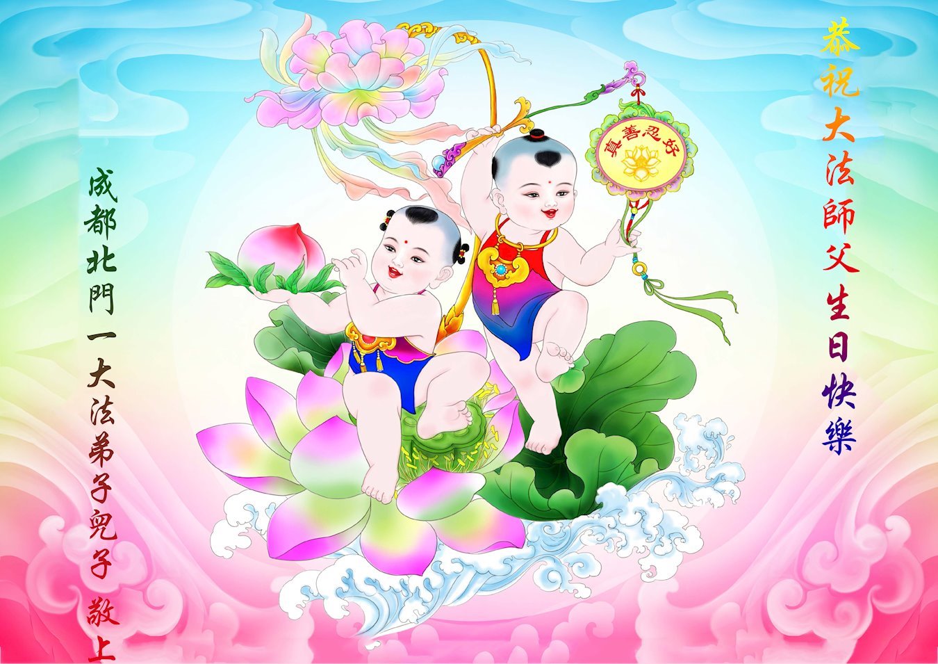 恭贺世界法轮大法日! 四川省成都市北门一大法弟子的儿子敬上 四川省成都市大法弟子恭祝师尊生日快乐!