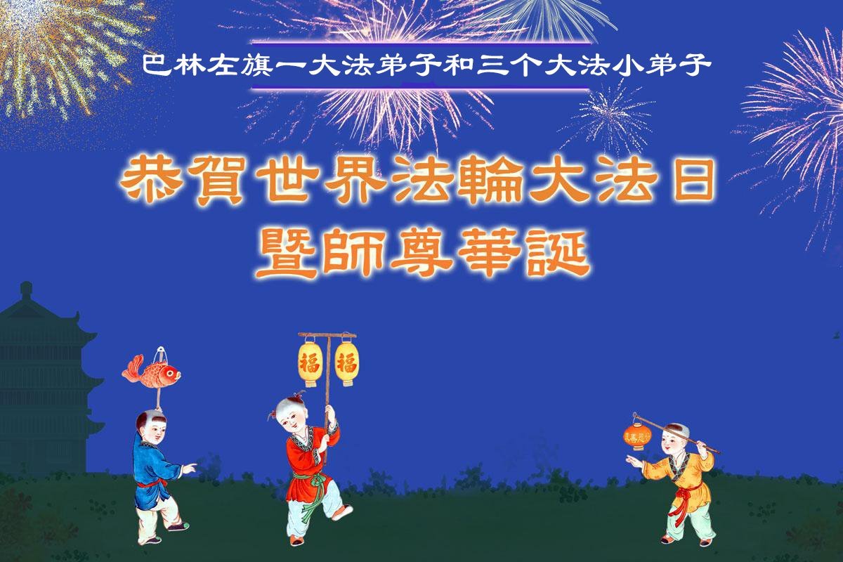 在这普天同庆的日子里,全体弟子谢师恩! 内蒙古巴林左旗一大法弟子和三个大法小弟子恭贺世界法轮大法日暨师尊华诞!